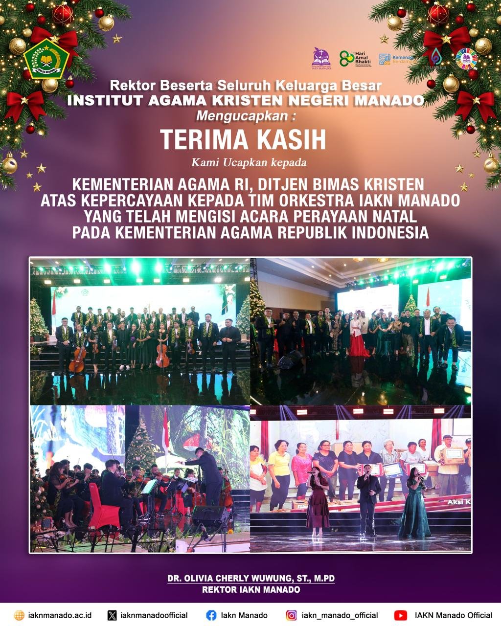 Manado - Rektor Dr. Olivia Cherly Wuwung, S.T., M.Pd bersama seluruh warga kampus  Institut Agama Kristen Negeri (IAKN) Manado menyampaikan ucapan terima kasih dan apresiasi yang setinggi-tingginya kepada Direktur Jenderal…