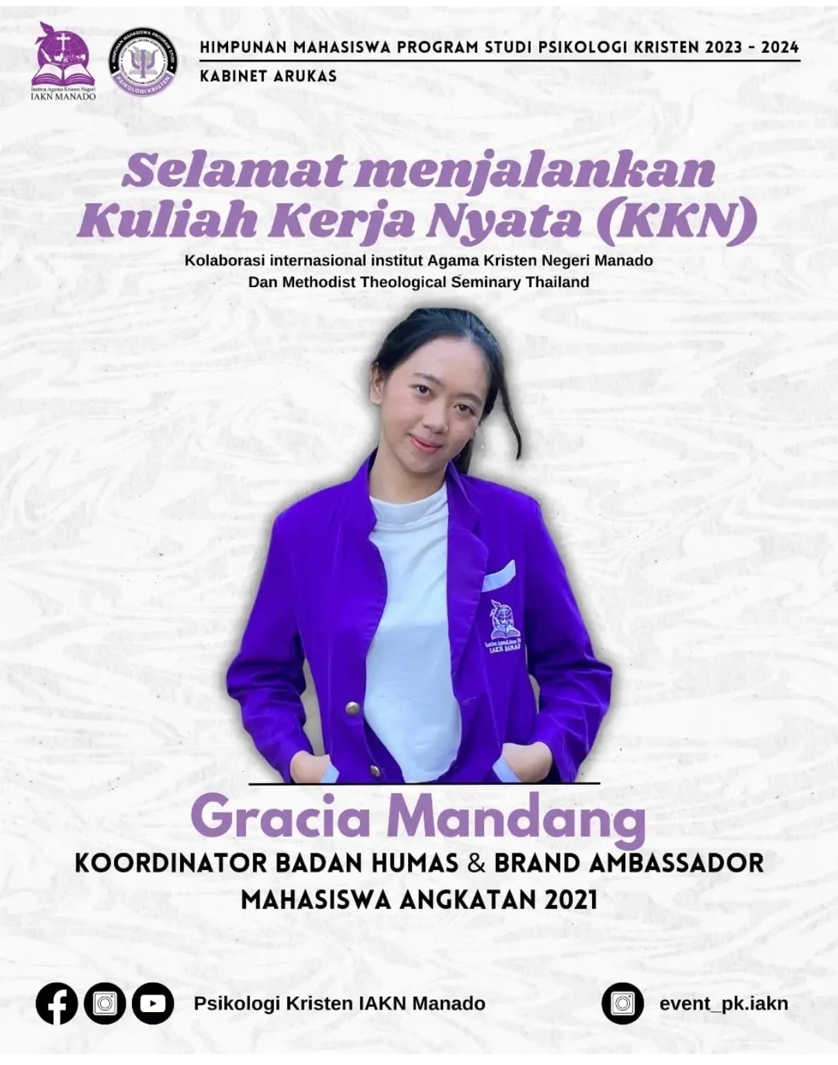 Minahasa, 03 September 2024 - Gracia Mandang, seorang mahasiswa Program Studi Psikologi Kristen dari Fakultas Seni dan Ilmu Sosial Keagamaan (FSISK) IAKN Manado, akan mewakili institut dalam Kuliah Kerja Nyata…