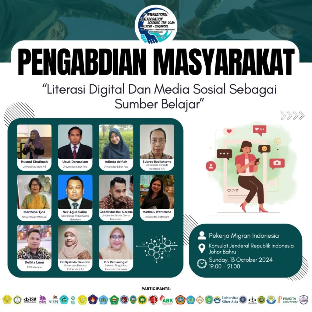 Sebagai penyelenggara kegiatan, Universitas Persada Indonesia Y.P.I mengagendakan Acara berlangsung di dua negara ini yakni Malaysia dan Singapura, yang diikuti oleh 86 Dosen dan Mahasiswa dari 27 Perguruan tinggi di Indonesia. Melalui kegiatan ini, perwakilan IAKN Manado Dekan Fakultas Ilmu Pendidikan Kristen, Dr. Deflita R.N Lumi, S.PAK., M.Pd, ikut mengambil bagian untuk memperkuat Kerjasama di bidang Pendidikan, penelitian dan pertukaran mahasiswa dengan institusi Pendidikan di Malaysia.