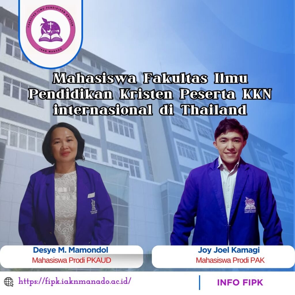 Pada tahun ini, dua mahasiswa terpilih dari FIPK, yaitu Deyse Mamondol dari Program Studi Pendidikan Kristen Anak Usia Dini dan Joy Joel Kamagi dari Program Studi Pendidikan Agama Kristen, akan segera berangkat ke Negeri Gajah Putih.