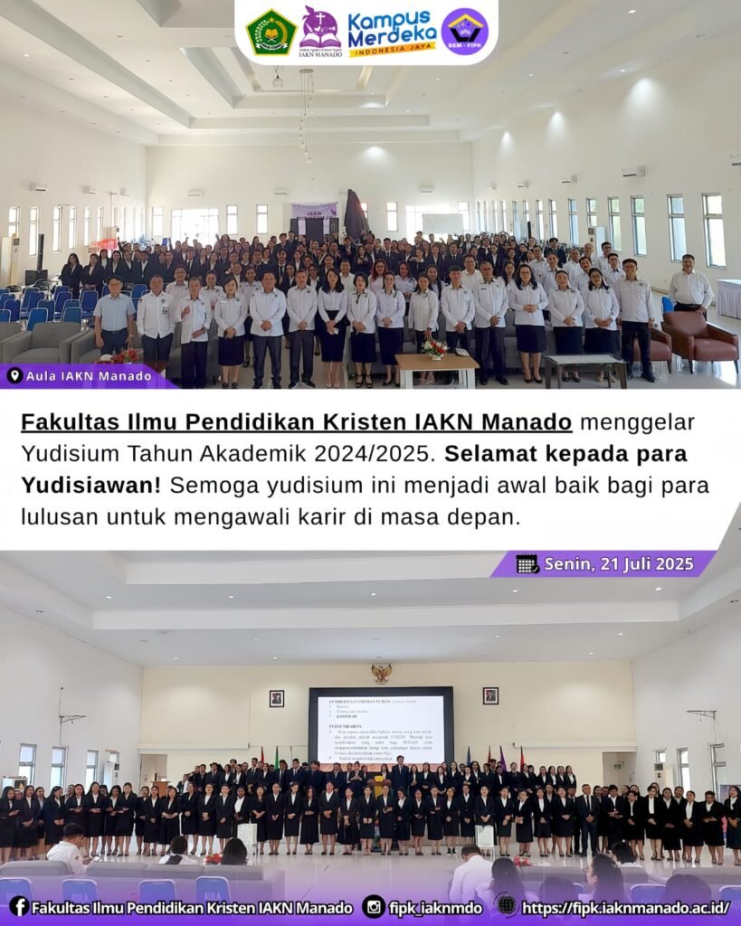 Manado, 21 Juli 2025 – Acara ini merupakan momen penting bagi mahasiswa yang telah menyelesaikan studi mereka di FIPK IAKN Manado.