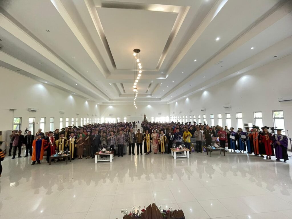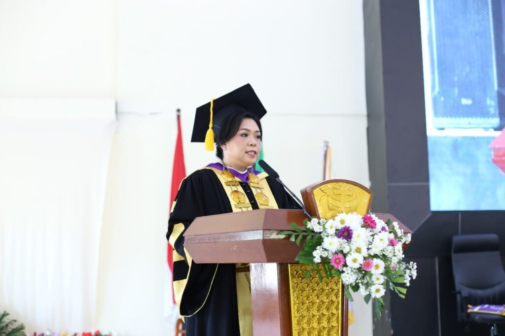 “Sebuah kebahagiaan bagi kita semua menyaksikan momentum wisuda bagi 8 Doktor, 6 Magister dan 260 Sarjana. Termasuk didalamnya 30 orang lulusan yang berasal dari program beasiswa Kita Cinta Papua (KCP). 23 orang Papua, 7 orang Papua Barat.” Tutur Rektor.