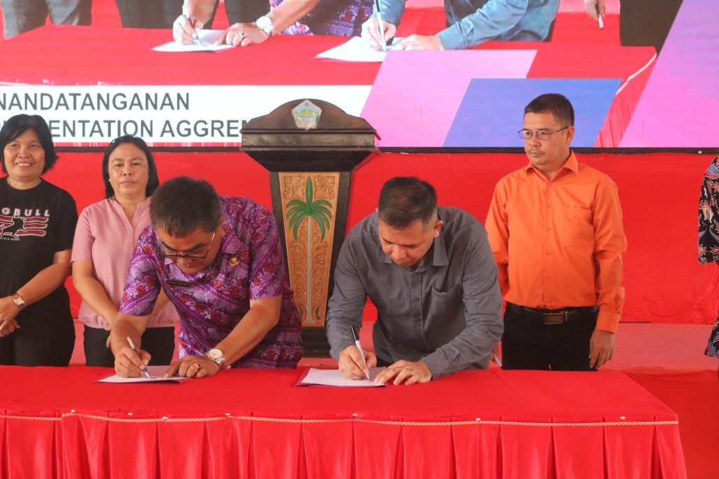 Acara dilanjutkan dengan penandatanganan Implementation Agreement. Kemudian, seremonial penyematan tanda peserta dan almamater serta penyerahan bendera posko KKN IAKN Manado Tahun 2024 di Kabupaten Minahasa Utara.*DOP