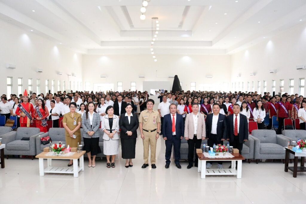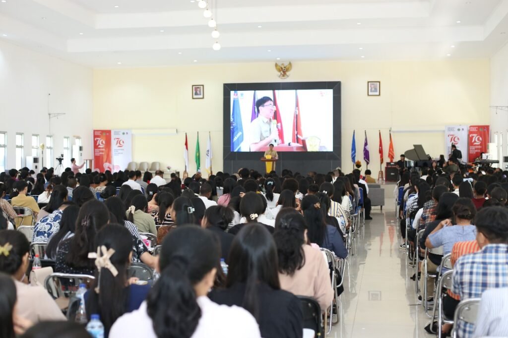 “Puji dan syukur kita panjatkan kepada Tuhan Yang Maha Esa karena atas anugerah-Nya, kita dapat berkumpul di sini untuk menyaksikan sebuah momen penting dalam upaya bersama membangun sumber daya manusia yang unggul dan berdaya saing,” ujar Rektor.