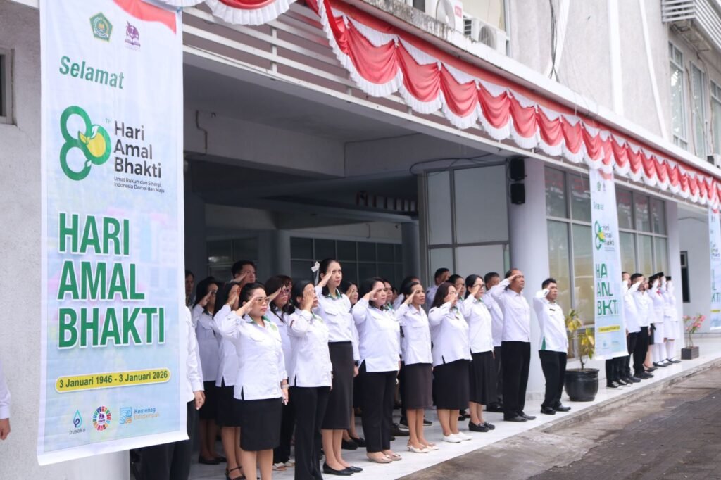 Manado – Institut Agama Kristen Negeri (IAKN) Manado menggelar Upacara Peringatan Hari Amal Bhakti (HAB) Kementerian Agama Republik Indonesia ke-80 di halaman kampus IAKN Manado, Sabtu, 3 Januari 2026. Rektor IAKN Manado Dr. Olivia Cherly Wuwung, S.T., M.Pd menjadi Pembina Upacara dan  diikuti oleh jajaran pimpinan institusi, dosen, tenaga kependidikan, serta mahasiswa sebagai wujud komitmen bersama dalam memperkuat pengabdian kepada bangsa dan negara melalui Kementerian Agama.