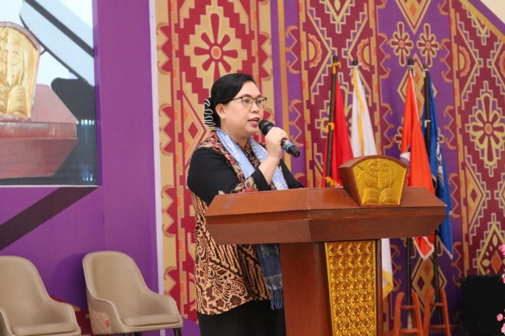 Menteri Agama RI yang diwakili oleh Dirjen Bimas Kristen, Dr. Jeane Marie Tulung, S.Th., M.Pd, memberikan sambutan sekaligus membuka seminar secara resmi.