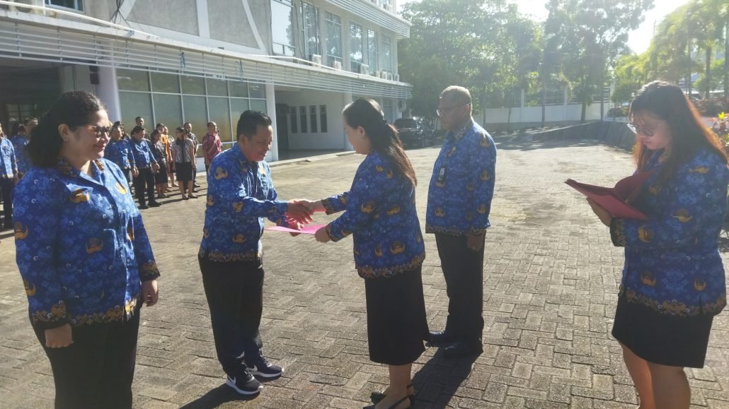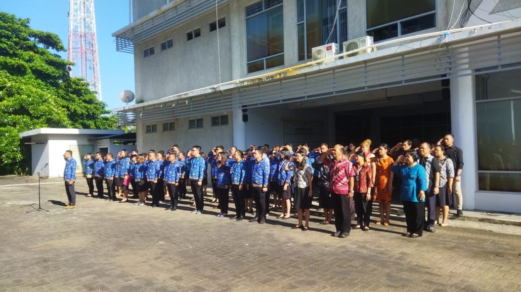 Institut Agama Kristen Negeri (IAKN) Manado laksanakan Apel Penghormatan Bendera Merah Putih dan Doa dirangkaian dengan Penyerahan Surat Keputusan Kenaikan Pangkat kepada 7 (Tujuh) Pegawai Negeri Sipil di halaman kampus IAKN Manado pada Rabu (17/04/2024).