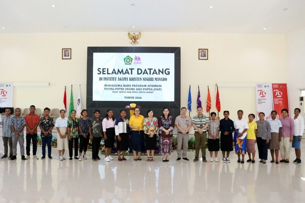 Manado, 6 September 2024 – Institut Agama Kristen Negeri (IAKN) Manado dengan bangga menyambut kedatangan mahasiswa Program Afirmasi Putra-Putri Orang Asli Papua dari Provinsi Papua dan Papua Barat. Dalam acara penyambutan yang digelar di aula kampus, Rektor IAKN Manado, Dr. Olivia Cherly Wuwung, S.T., M.Pd menyampaikan sambutan hangat kepada 18 mahasiswa yang berhasil lolos seleksi dan kini resmi menjadi bagian dari keluarga besar IAKN Manado.