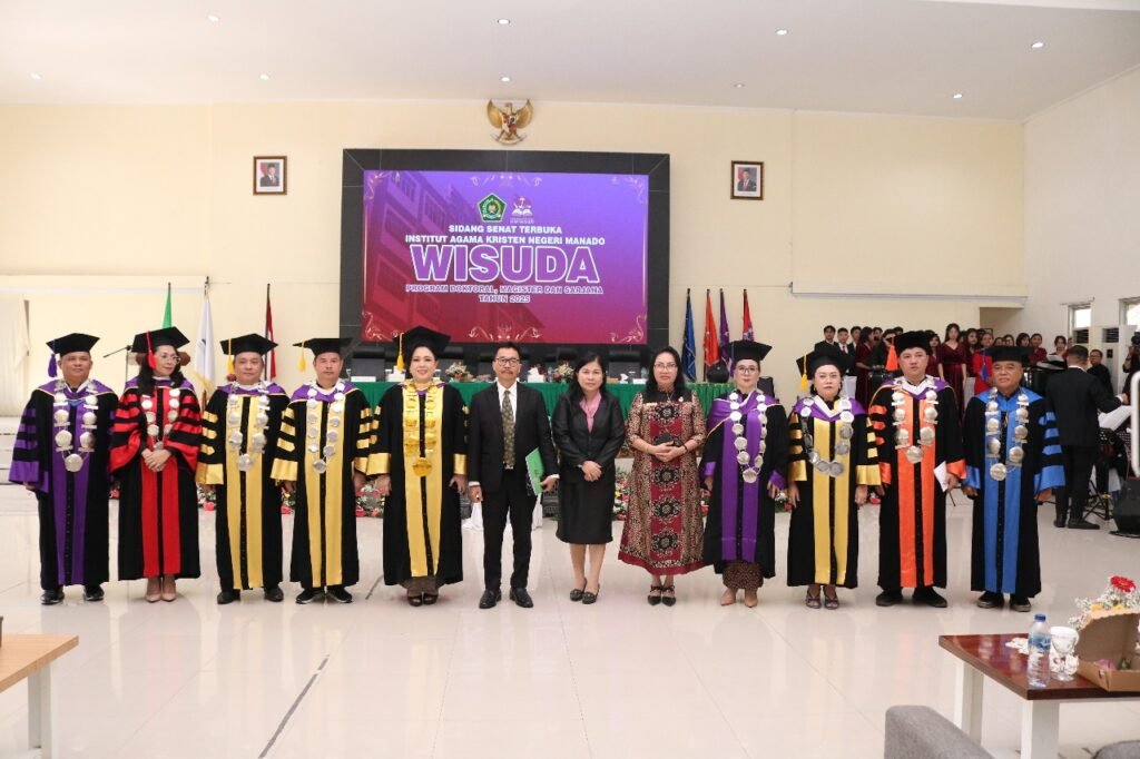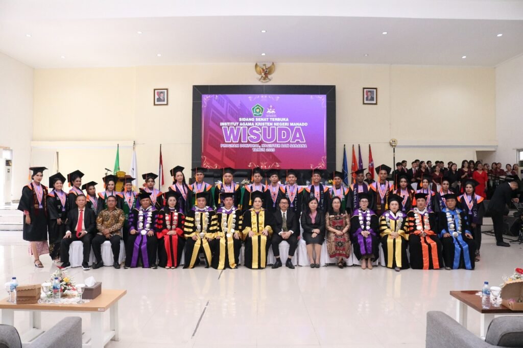 Manado — Institut Agama Kristen Negeri (IAKN) Manado sukses menggelar prosesi wisuda bagi 241 wisudawan dari jenjang sarjana, magister, hingga doktoral. Kegiatan yang berlangsung secara khidmat dan tertib ini menjadi puncak perjalanan akademik sekaligus awal dari pengabdian para lulusan bagi gereja, masyarakat, dan bangsa.