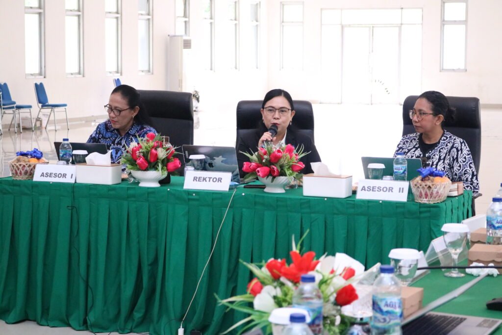Kegiatan asesmen lapangan resmi dibuka dengan sambutan oleh Rektor IAKN Manado, Dr. Olivia Cherly Wuwung, ST., M.Pd. Dalam sambutannya, beliau menyampaikan apresiasi dan dukungan penuh terhadap proses akreditasi sebagai bagian dari komitmen kampus dalam menjaga mutu pendidikan tinggi.